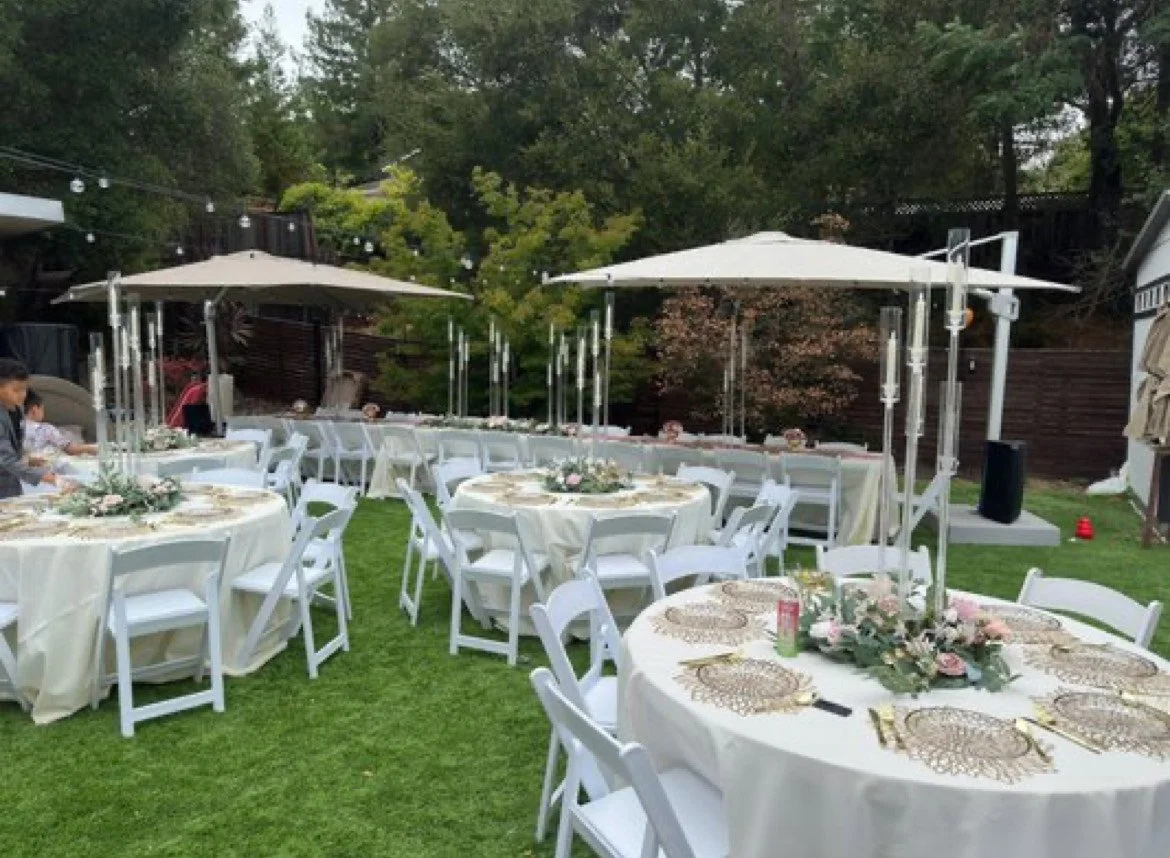 We offer a wide range of high-quality party rentals-including tables, Chairs, tents, bounce houses, and more. What sets us apart is our commitment to reliability, cleanliness, and exceptional customer service.